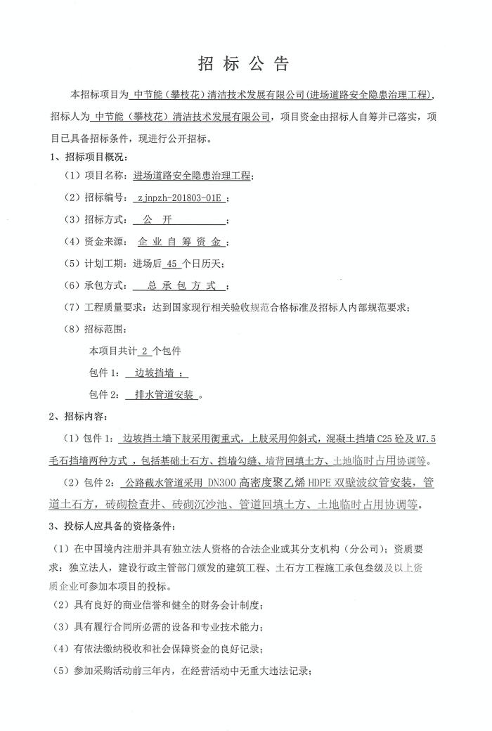 進場道路安全隱患治理工程招標(biāo)公告