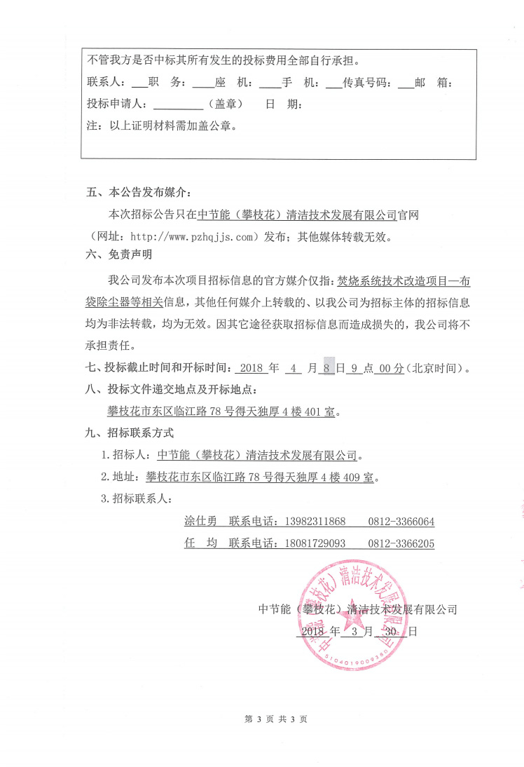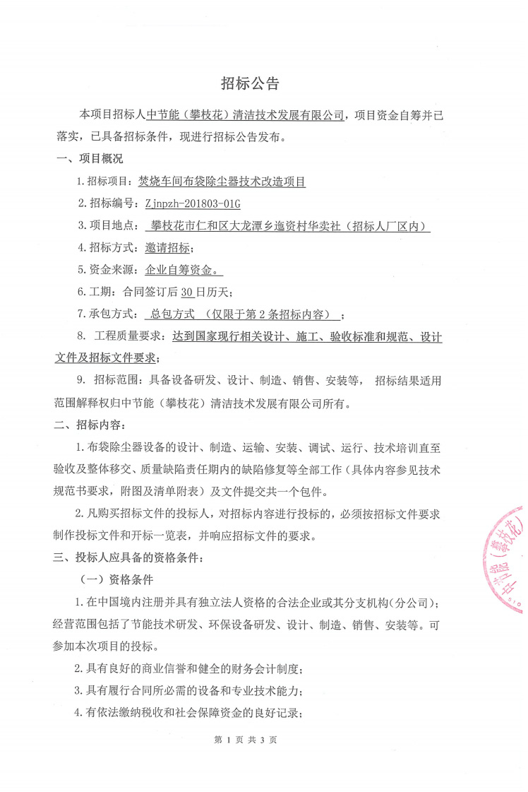 焚燒車間布袋除塵器技術(shù)改造項(xiàng)目招標(biāo)公告