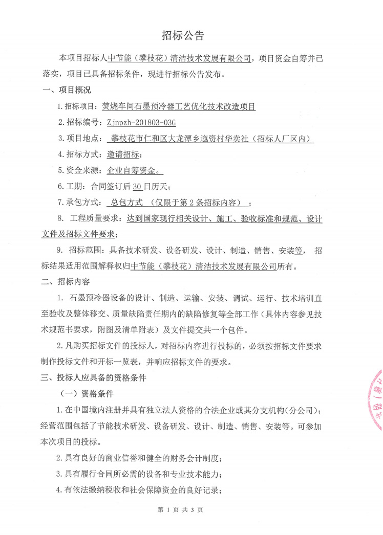 焚燒車間石墨預冷器工藝優(yōu)化技術改造項目招標公告