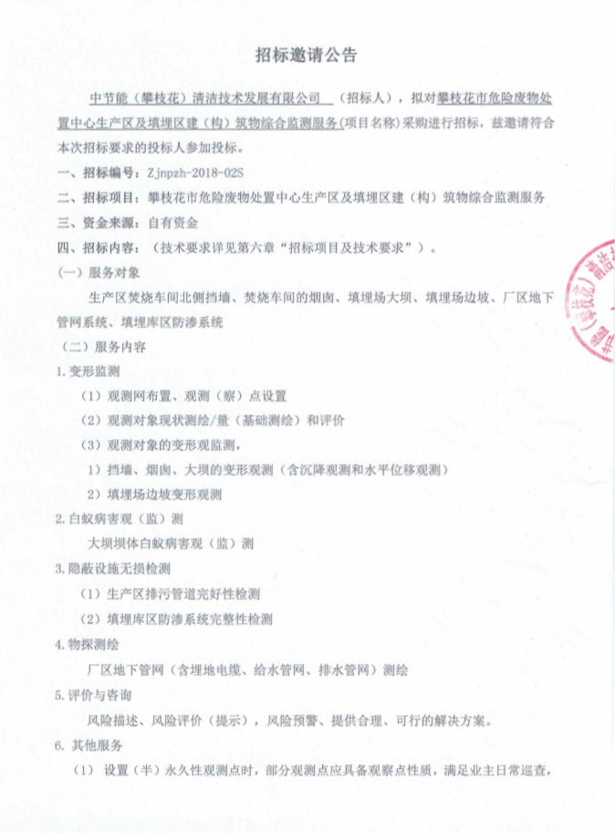 生產區(qū)及填埋區(qū)建(構)筑物綜合檢測服務采購進行招標邀請公告